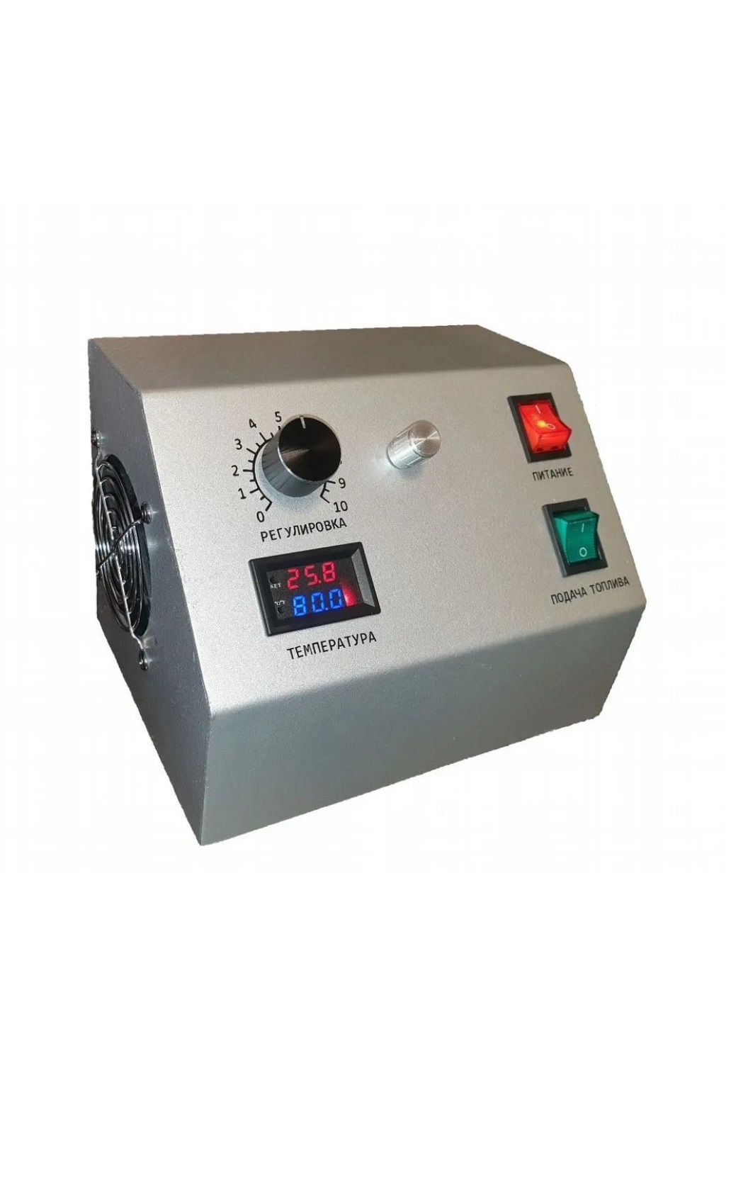 Подача топлива осуществляется электрическим топливным насосом. Регулировка параметров работы ведётся с блока управления, на который выведен датчик температуры, ручка регулировки подачей топлива, кнопка включения топливного насоса.